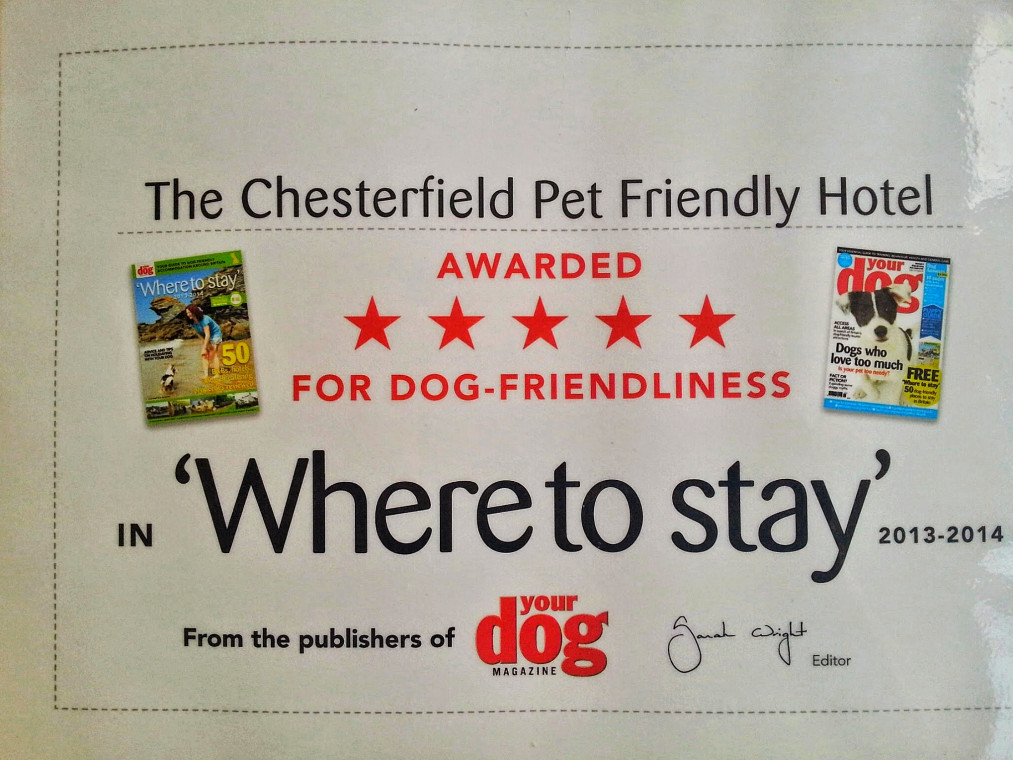 The Chesterfield Pet Friendly B&B has been owned and managed by brother and sister, Stephen and Julie Clarke for over thirty years. “Our aim, as passionate dog lovers, is to create a genuine warm welcome for you AND your dogs. Dogs stay free of charge, and are welcome in all the bedrooms, and throughout the hotel, including the bar and dining room. The welcome extends to all breeds of dog, of all shapes and sizes. There is no upper limit on the number of dogs you can bring, it is governed only by the space available. If your three or four dogs are happy to curl up together in a small space, that's fine by us.”