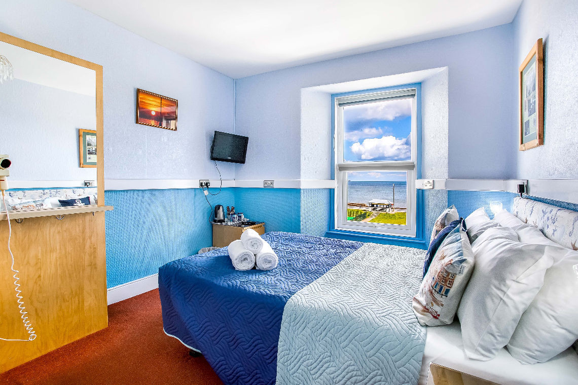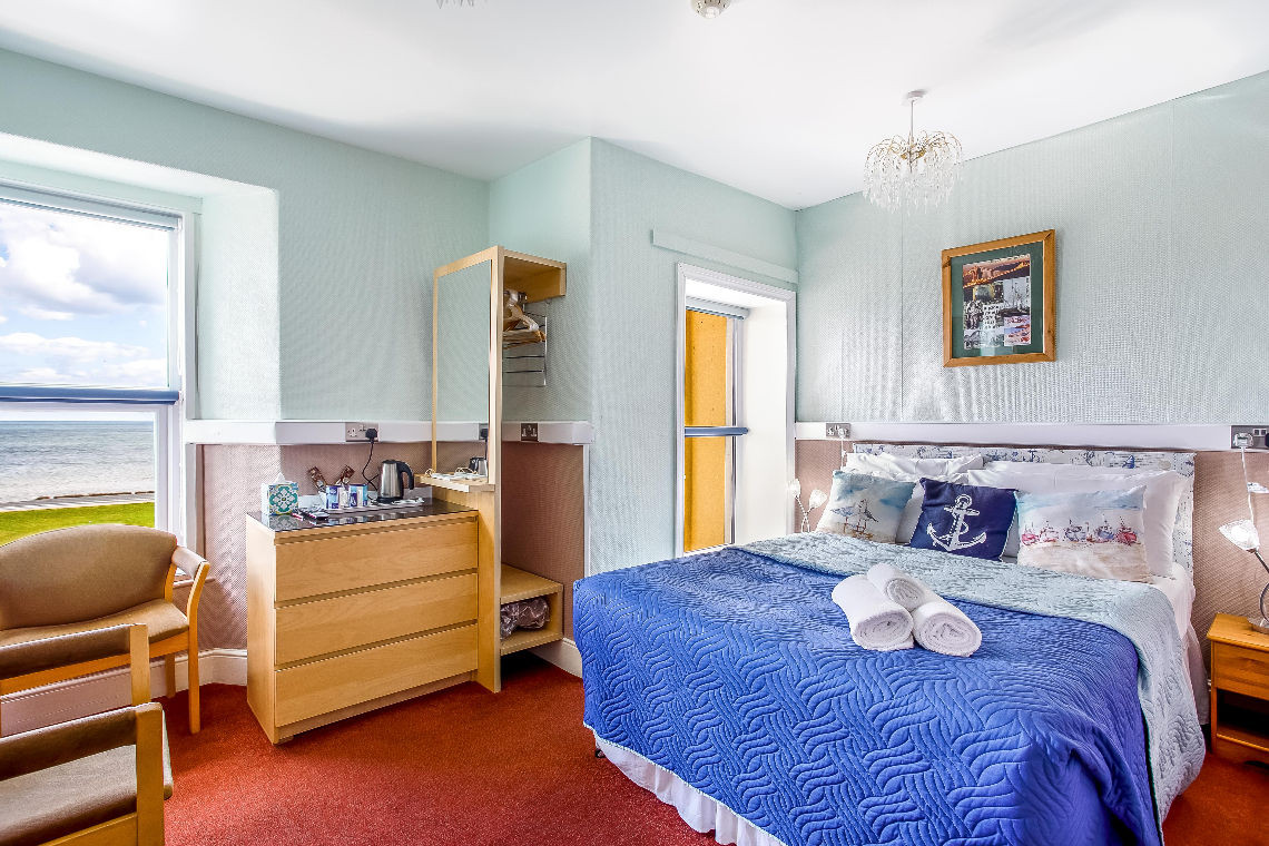 We offer Self Catering "Room Plus" accommodation, meaning you pay for your private en-suite bedroom and have the added benefit of the use of a communal kitchen and seaview dining room. We also provide basic breakfast items and condoments for use during your stay.