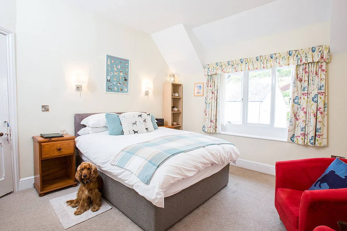 Boutique style dog friendly bed and breakfast . Dogs allowed everywhere in the house including the conservatory/ dining room and sitting room with log fire. Rooms have high quality duvets ,pillows , duvet and pillows. They have fridges,WiFi, radios and dog beds, bowls, food, towels etc for your dog. Westleigh is 2 mins walk from beach, south west coast path and award winning village of Beer with dog friendly pubs and restaurants.
