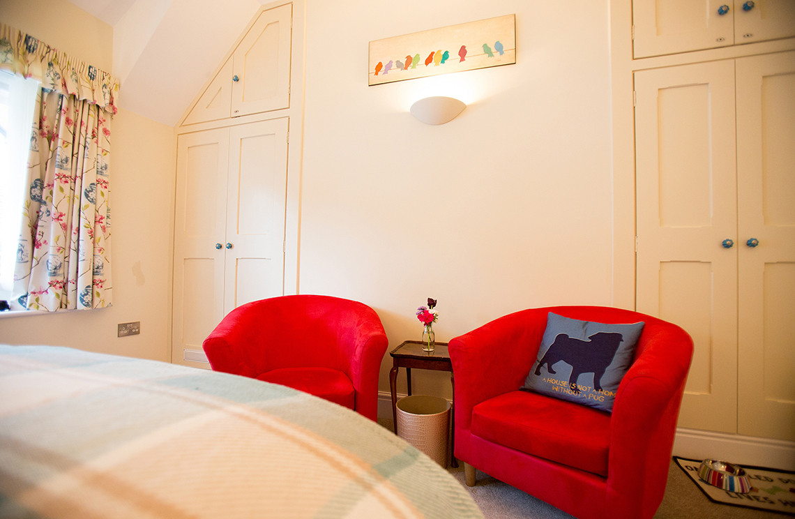We encourage guests not to leave their dogs alone as this is supposed to be a holiday where dogs enjoy their holiday as much as their owner, hence they are allowed all over the house and enclosed garden.No limit.just how comfortable guests feel in the room!