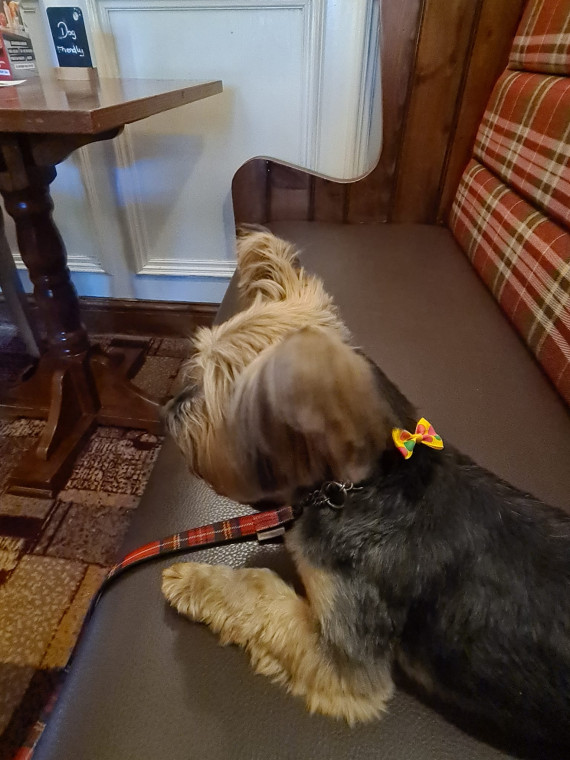 Brewers fayre fort william great doggy place they are allowed in the bar area and you even get asked if they want some scraps would highly recommend
