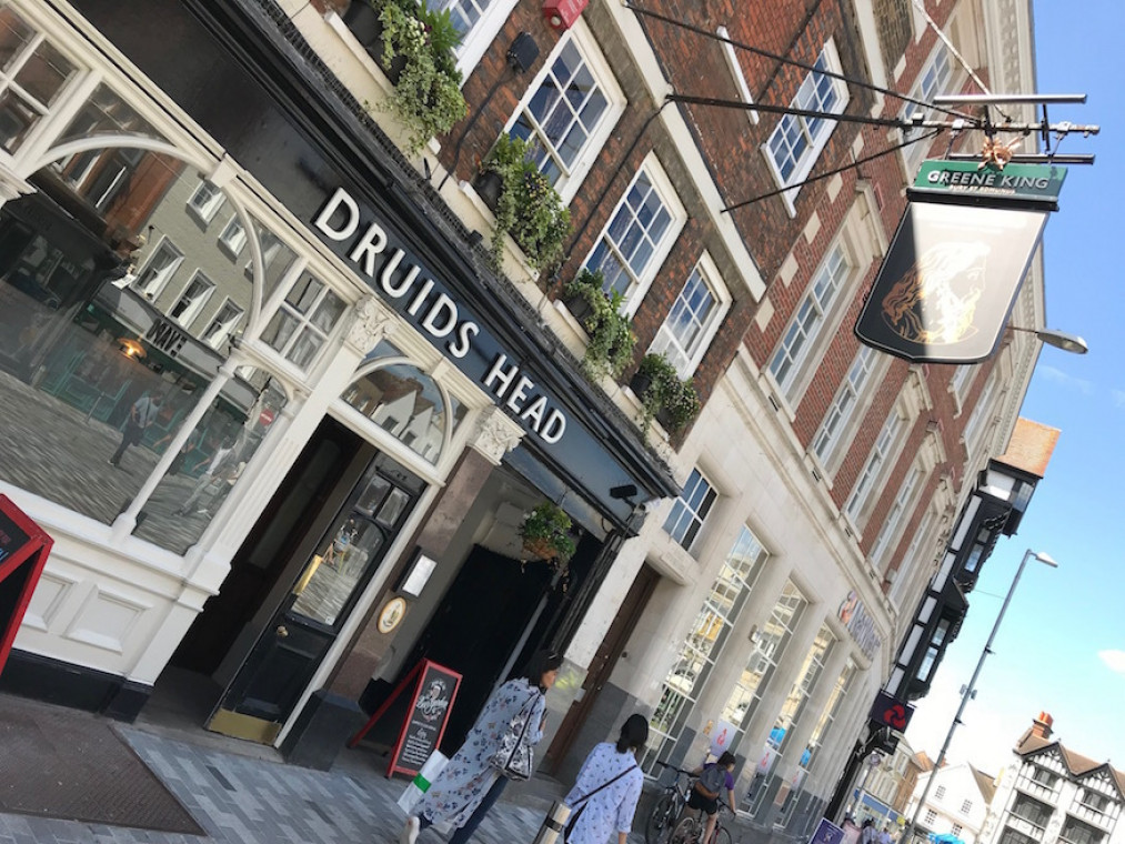 Read MoreSituated in the middle of Market Square in central Kingston the Druids Head is a Grade 2 listed building constructed in the early 16th century. With a log stove for the winter, and a spacious beer garden for the summer, your dog will love it. Water bowls and treats are on hand, and our staff love dogs! While you enjoy a drink from our huge selection, including 9 real ales, your dog will be very happy at the Druids Head.