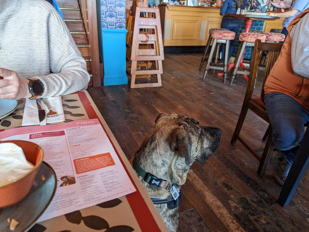 Extremely friendly staff and always say they sort out the VIPs first (dogs) with doggy treats and their own bowl of fresh water. Dogs welcome inside or out, upstairs or down. Newly opened and tight on the sea front next to pier. Lovely food and clean. They always make a fuss of the dogs.