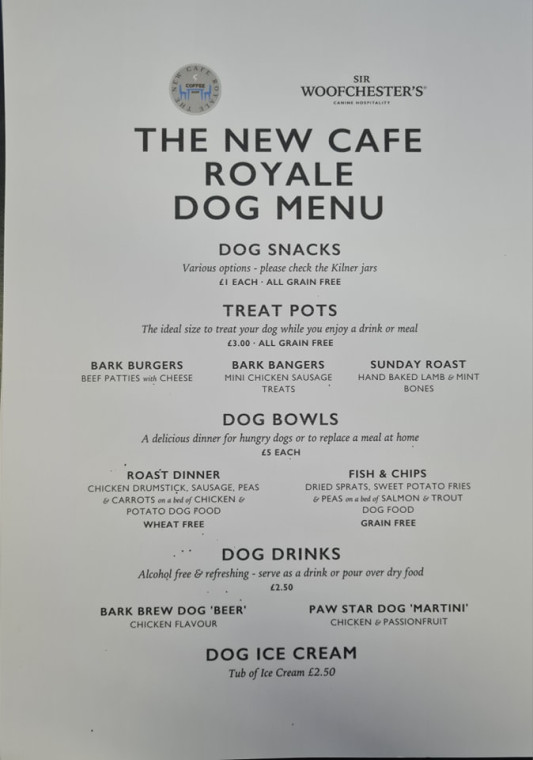 The cafe has a separate menu for our canine friends. It’s a wonderful, quirky and fun touch.