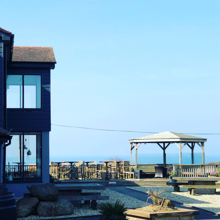 Dog friendly in garden bar. Open wood fire, sofas. Front and back terraces. Stunning sea views. Serving classic pub dishes with a twist. Using fresh local produce. Cocktails/Gins wine all on offer. Resident boxer dog on site to greet.