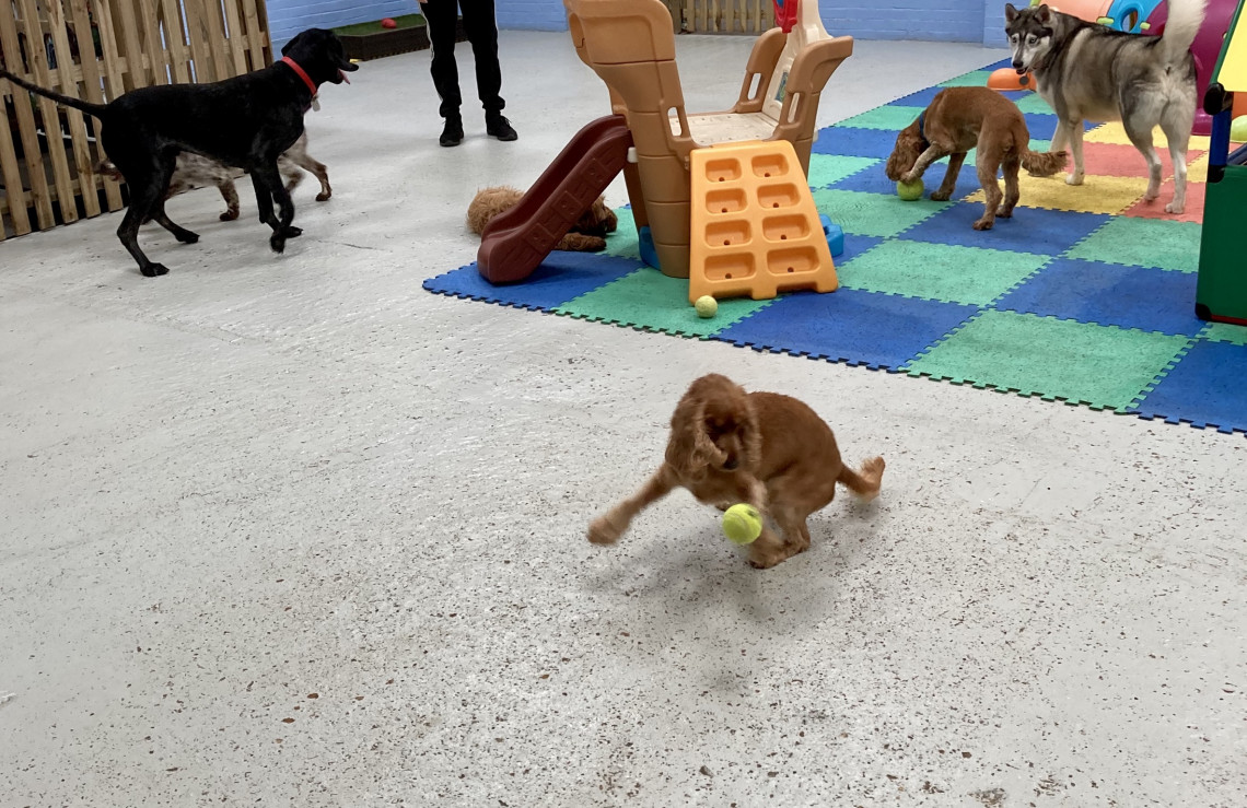 A doggy daycare with a spacious indoor and outside area to cater for all weathers.