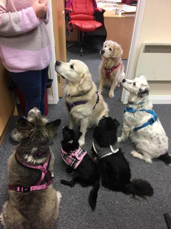 All of the office staff in our work place are dog lovers which shows by the fact that the office dogs now outnumber the humans. We have six dogs who are in the work office everyday with us five of which are rescue dogs. One of our rescues was paralysed on her back legs when she was first brought over however after 103 sessions of hydrotherapy she is now up and walking confidently.