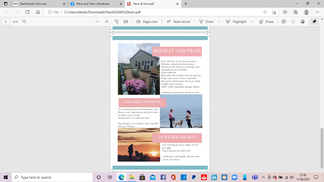 I am based near Great Yarmouth in Norfolk. We have an exciting venture that opened in June 2021. Training breaks for you and your dog. Studio accommodation with a private patio area. Training tailored for you and your dog. I am a positive reinforcement dog trainer, accredited with the IMDT Institute of Modern Dog Trainers. I am also a member of the Pet Professional Network and part of the Admin team on Reactive Dogs UK. I do not offer group classes, just 121s. I have carefully created training programmes, we look at your dogs body language and what they are saying to us. Giving your dog choice is empowering and will help them to gain confidence. We are team, you, me and your dog.